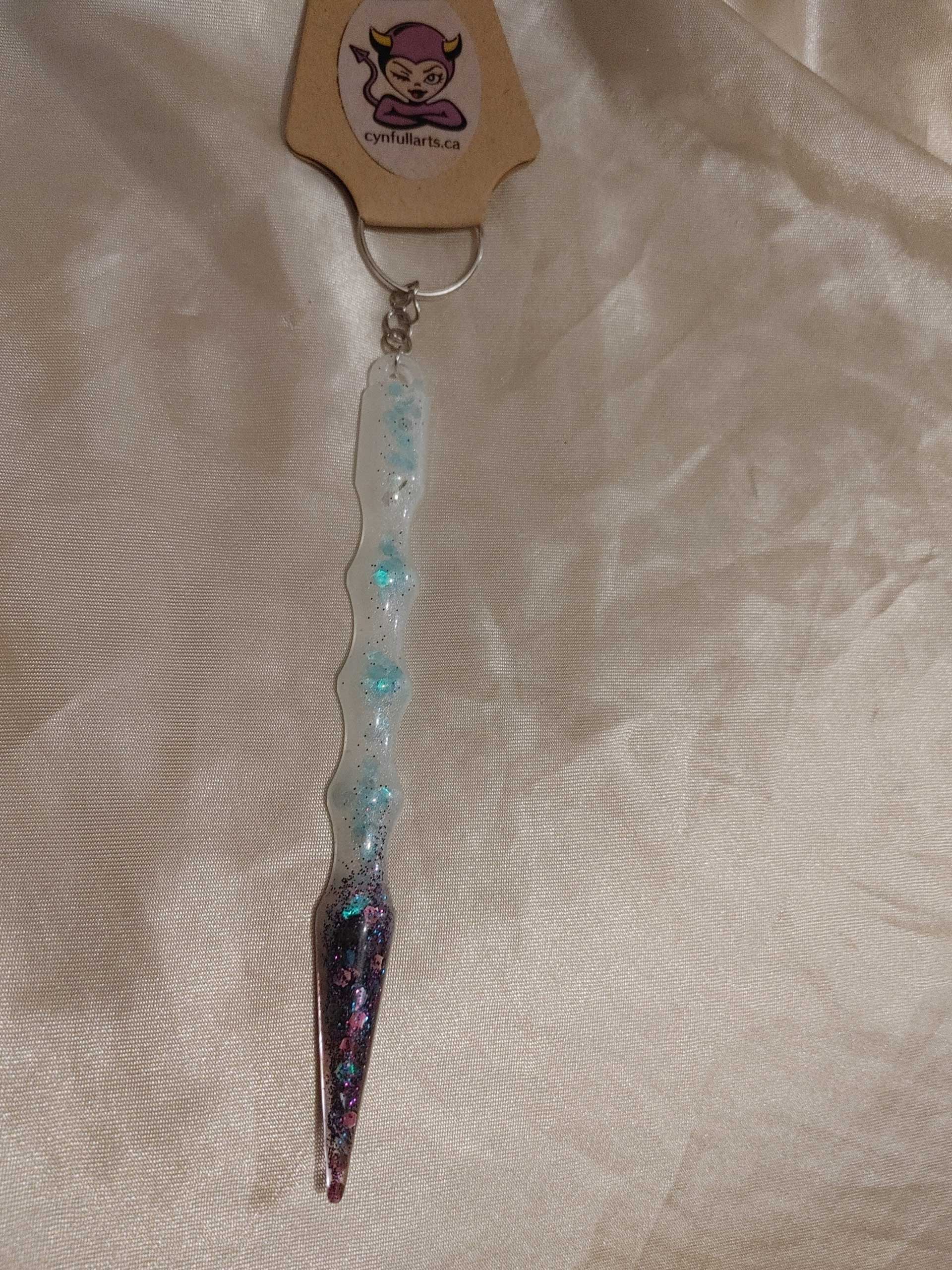Be the first to review “Blue Glitter/Purple Tip Round Sword Keychain”