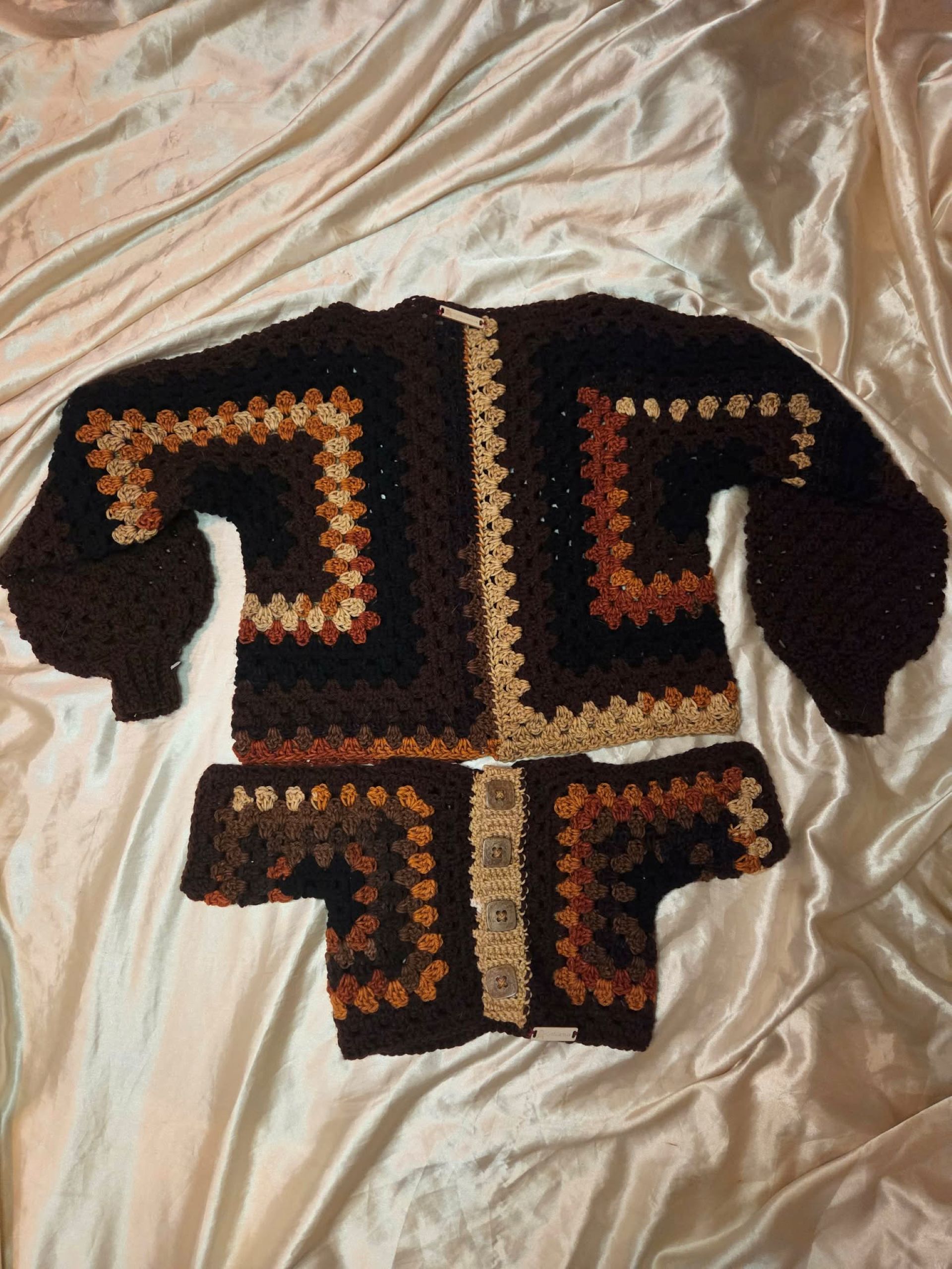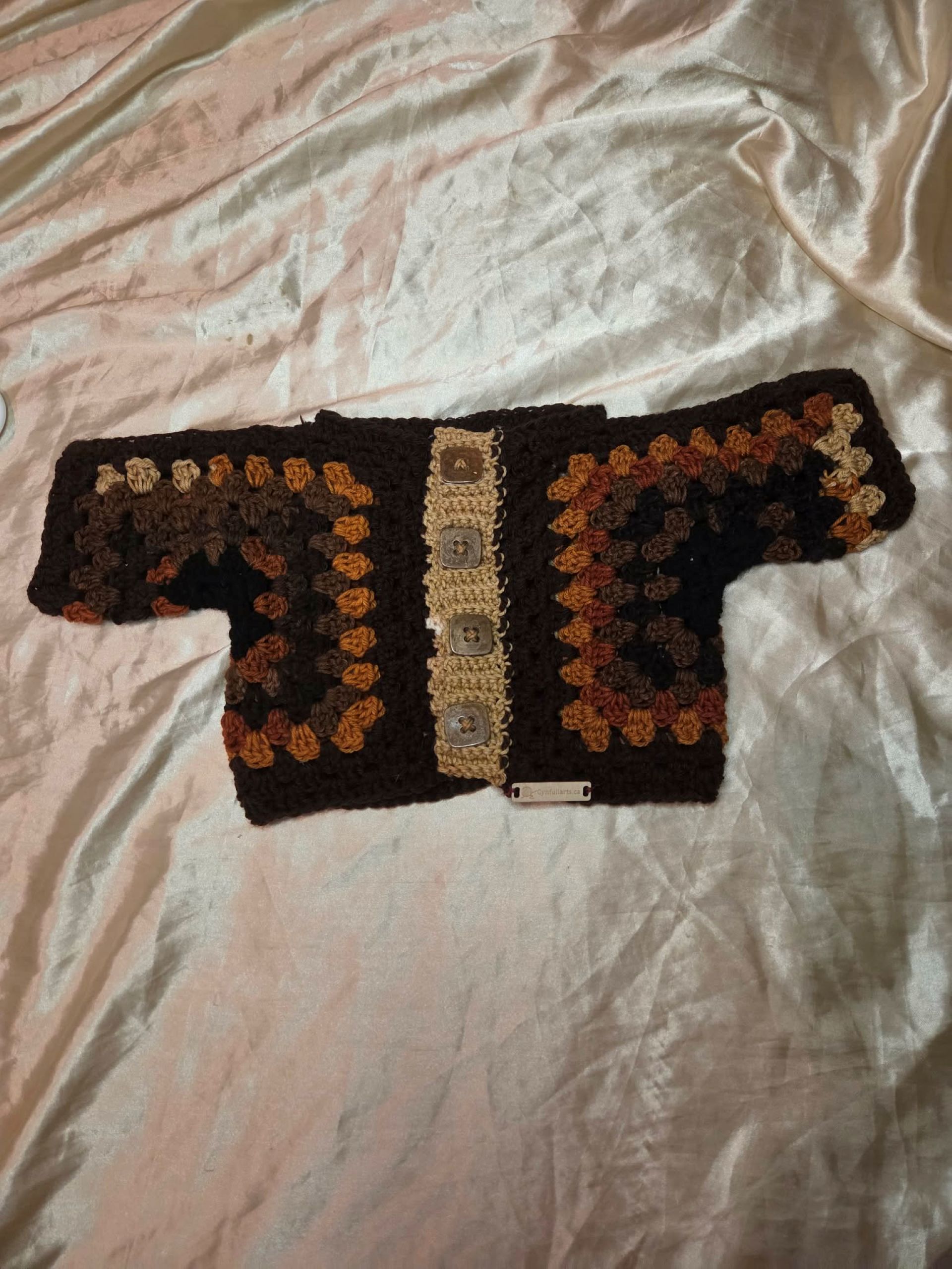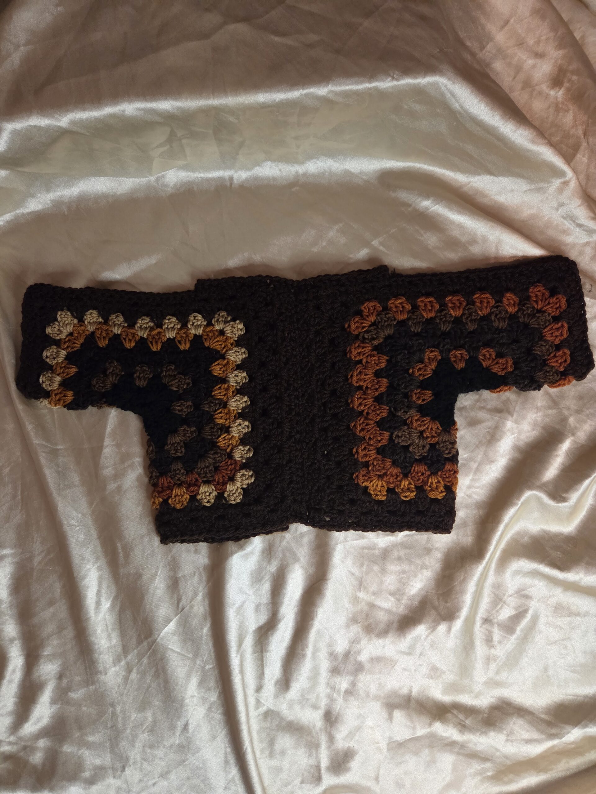 Granny Hexagon Black/Brown/Latte Cropped Long Sleeve Crochet Toddler/Child Cardigan
