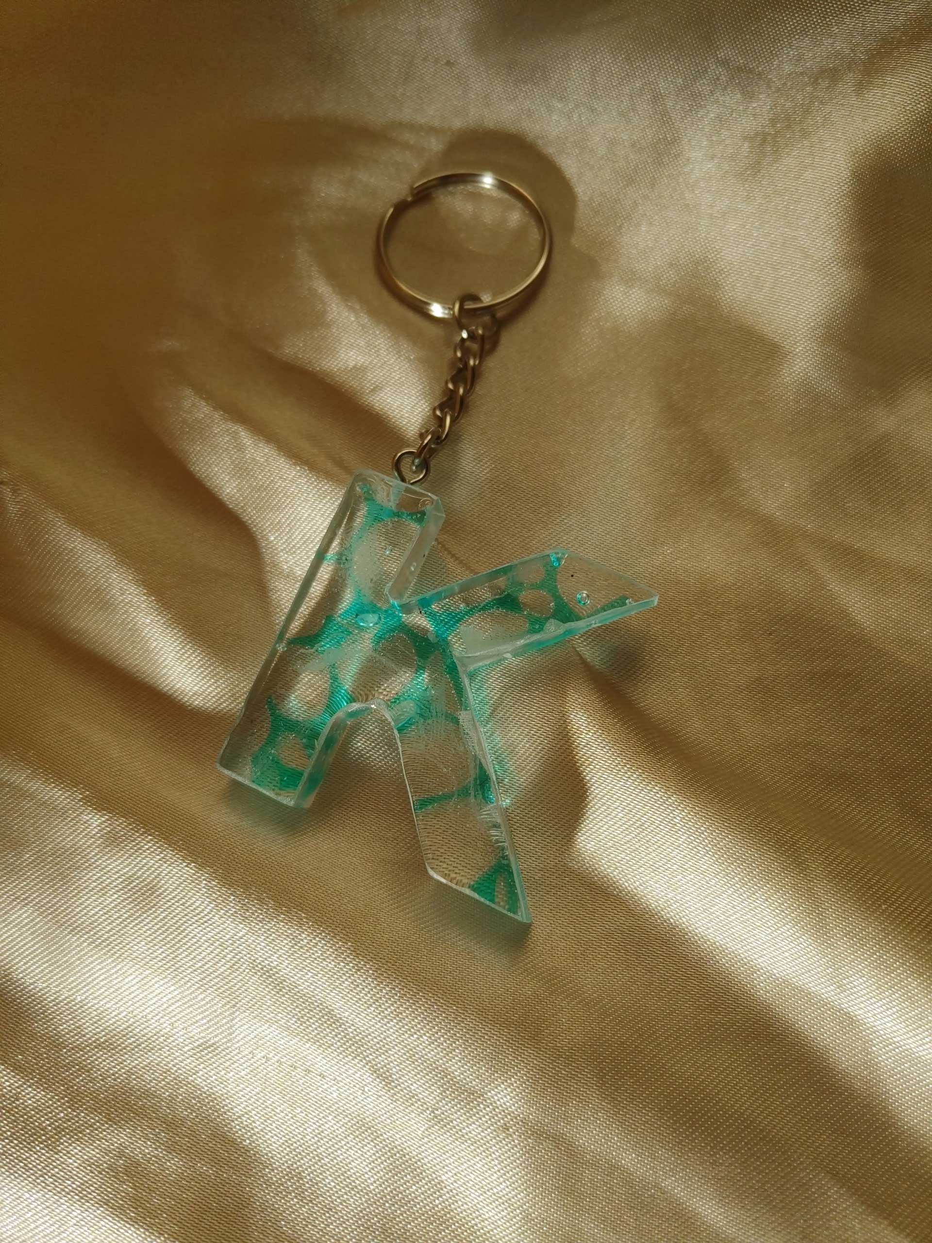 Molded clear resin with embedded blue mesh cut-out to mimic light catching water reflection.